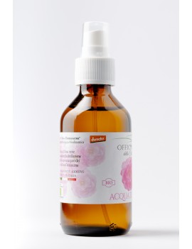 Acqua di Rose BIOAcqua Floreale o Idrolato di Rosa Damascena da coltivazione Biologica e Biodinamica sulle colline di Torino, ottenuta mediante distillazione in "corrente di vapore".